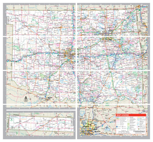 Oklahoma State Highway Laminated Map by Rand McNally - Easy to Fold