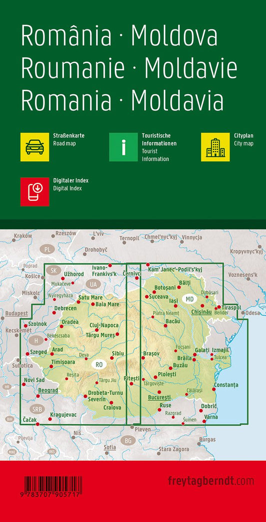 Romania & Moldova Road Map by Freytag & Berndt