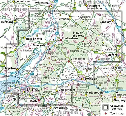 The Cotswolds & Gloucestershire OS Map
