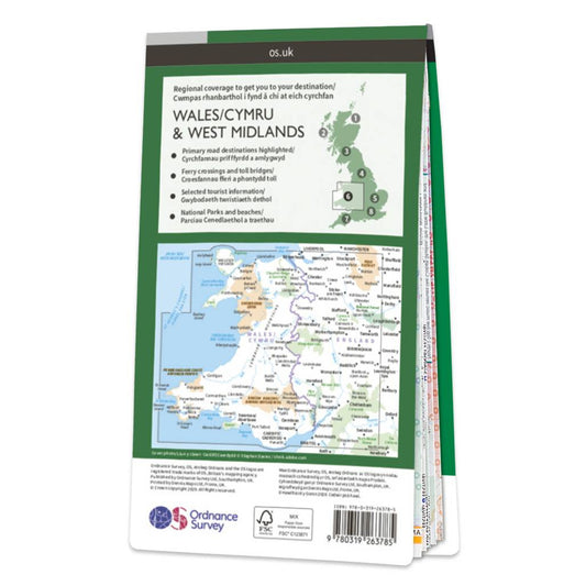 Wales/Cymru & West Midlands Road & Reference Map by Ordnance Survey