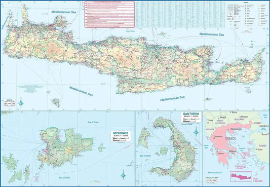 Crete, Mykonos & Santorini Travel Map