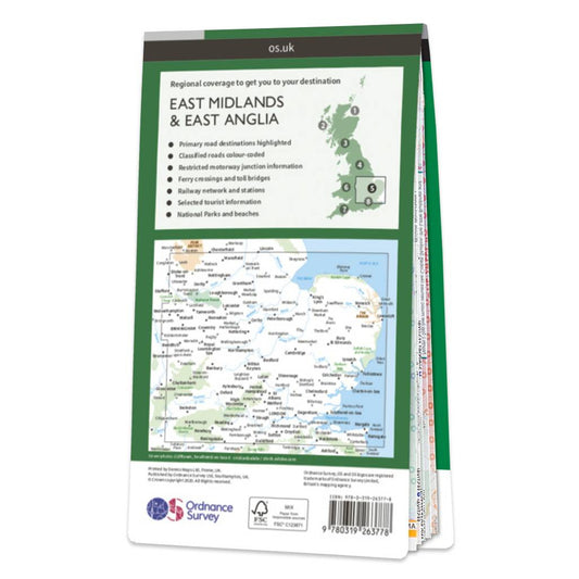 East Midlands & East Anglia Road & Reference Map by Ordnance Survey