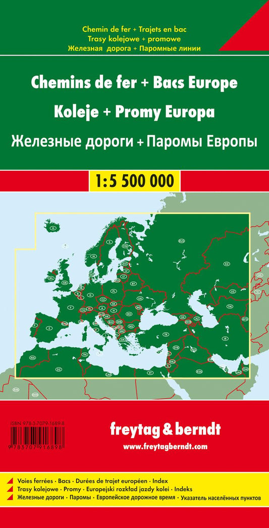 Europe Railways & Ferries Guide Map by Freytag & Berndt