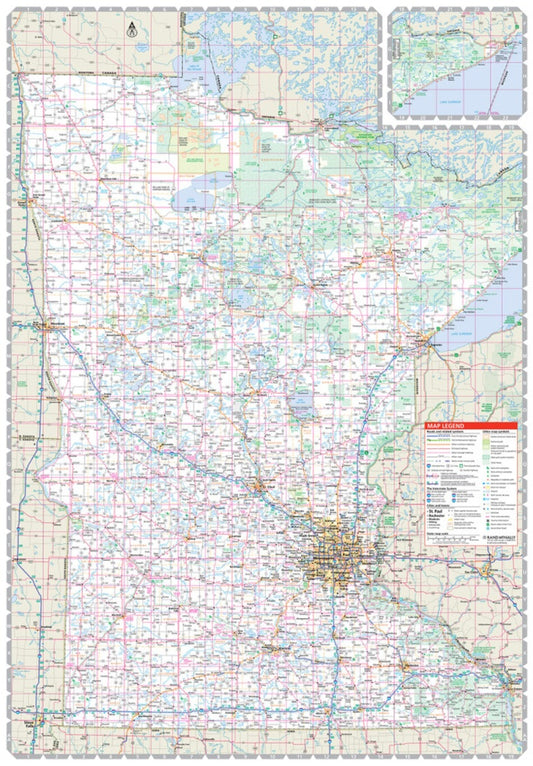 Minnesota State Highway Laminated Map by Rand McNally - Easy to Fold