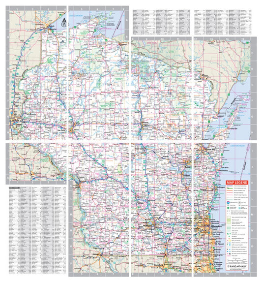 Wisconsin State Highway Laminated Map by Rand McNally - Easy to Fold