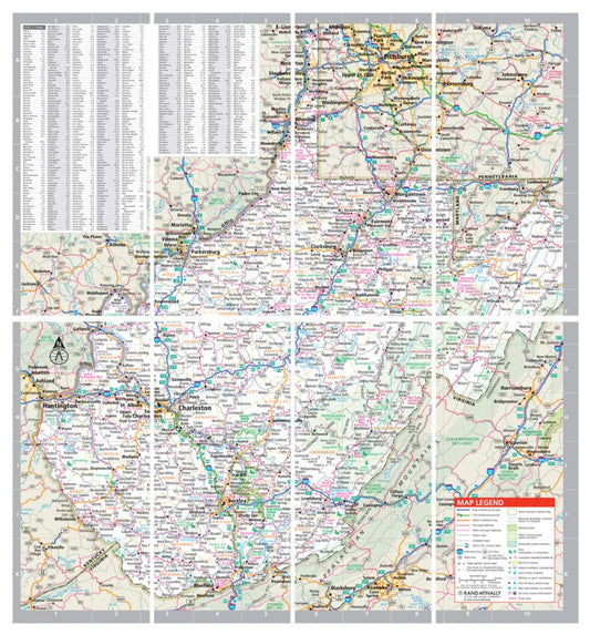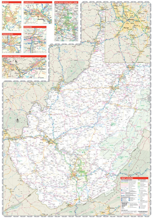 West Virginia State Highway Laminated Map Rand McNally - Easy to Fold