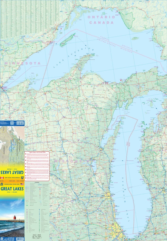Great Lakes Area Travel & Reference Map by ITMB