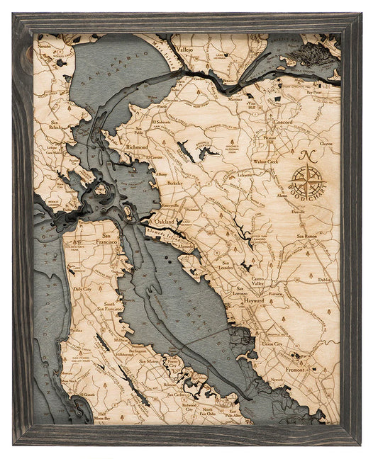 San Francisco, CA 3D Nautical Wood Chart - Small
