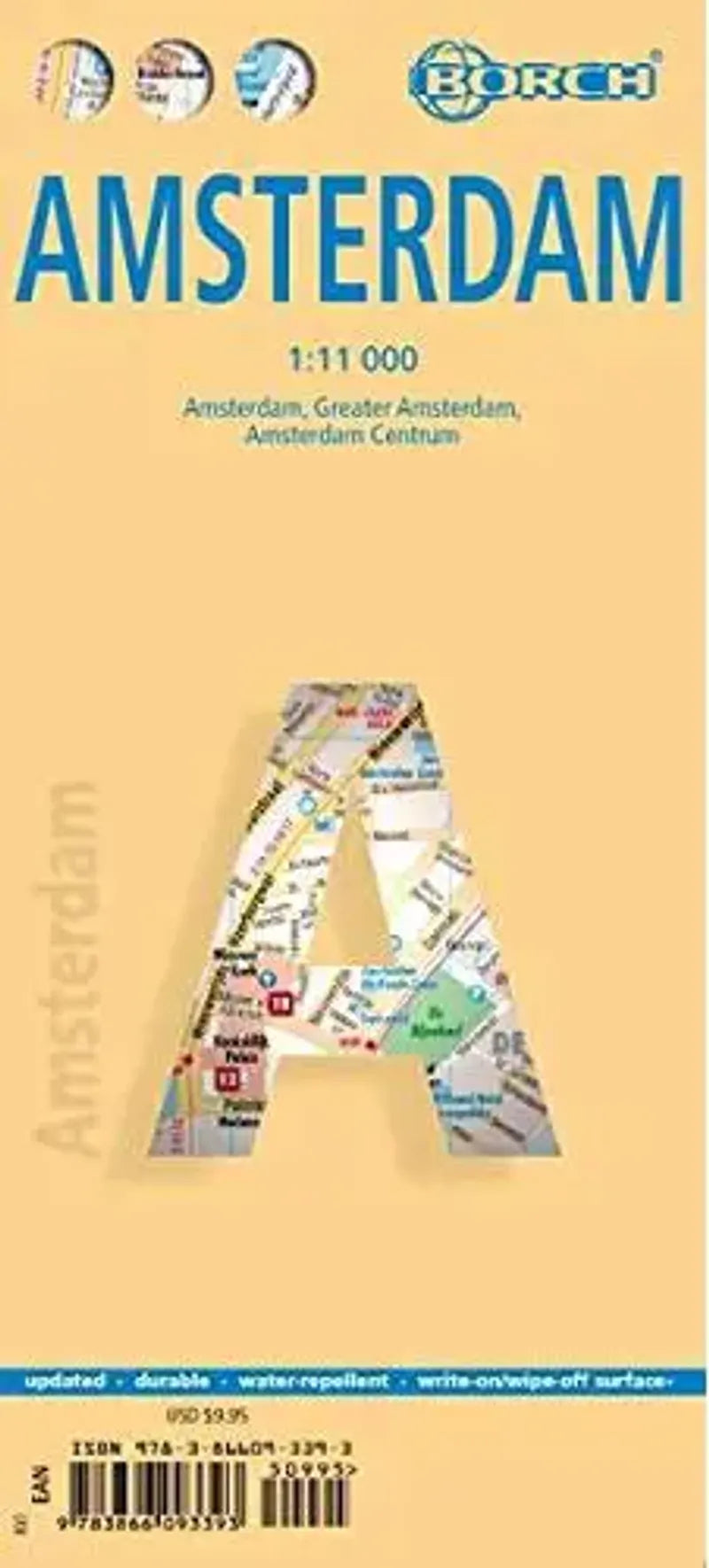 Amsterdam Map by Borch is a laminated city street map with details (i.e. place names, points of interests etc) of the layout of the city.