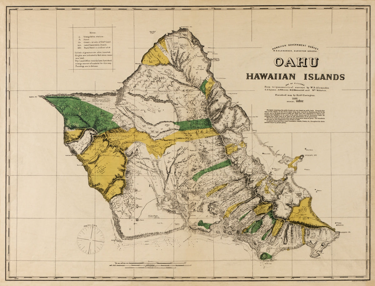 This Antique Reproduction Map of Oahu published in 1881 was created 18 years before U.S. annexation in 1899.