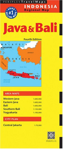 The Java & Bali Travel Map by Periplus is crafted as a user-friendly tool for travelers.