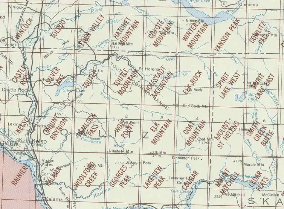 The Mount St Helens Area is in SW Washington and covers from the city of Kelso on the west, going east to include Mount St Helens herself. Most intriguing title in this grouping.....Kalama!