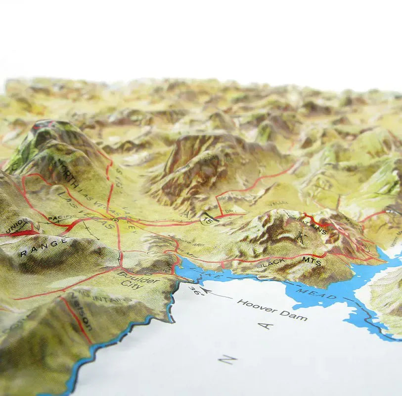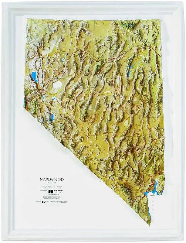Nevada Raised Relief Map: Explore the stunning and diverse geography of Nevada with your very own Raised Relief Map. This carefully crafted map offers a tactile, 3D representation of Nevada's breathtaking landscape, capturing the dramatic mountain ranges, iconic peaks, vast deserts, and water bodies. Perfect for geography enthusiasts, educators, or anyone looking to appreciate Nevada's unique topography, this map brings the Silver State's natural beauty to life.