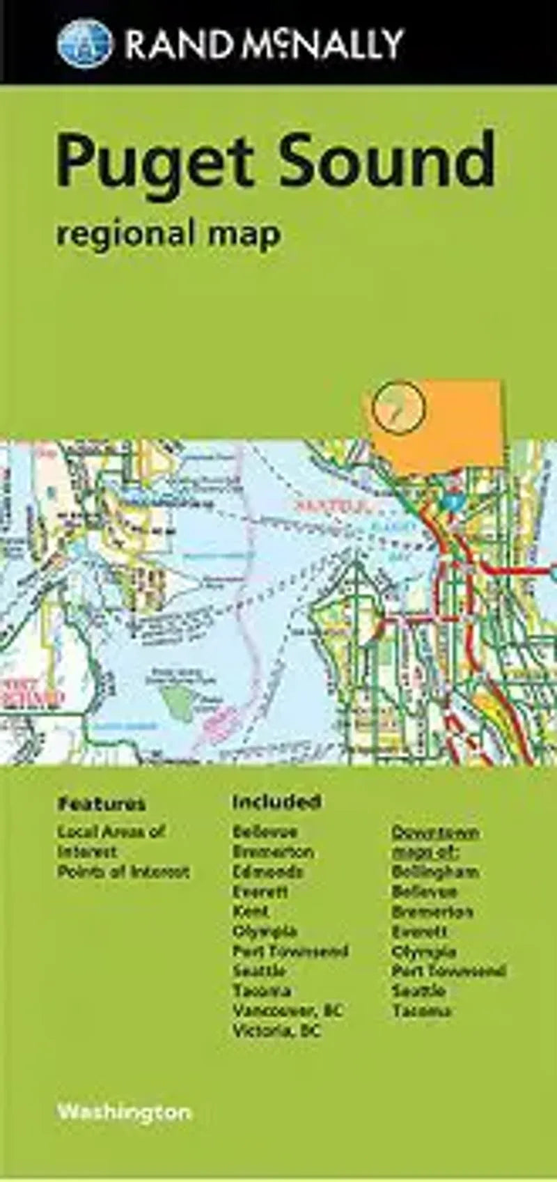This Puget Sound road map by Rand McNally gives a nice overview of the region from Victorica, BC to Olympia, WA.