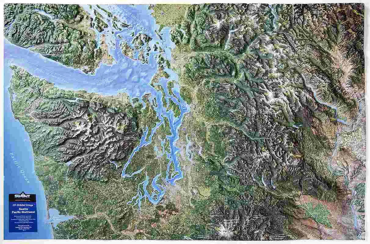 Seattle Washington / Pacific Northwest Raised Relief Map
