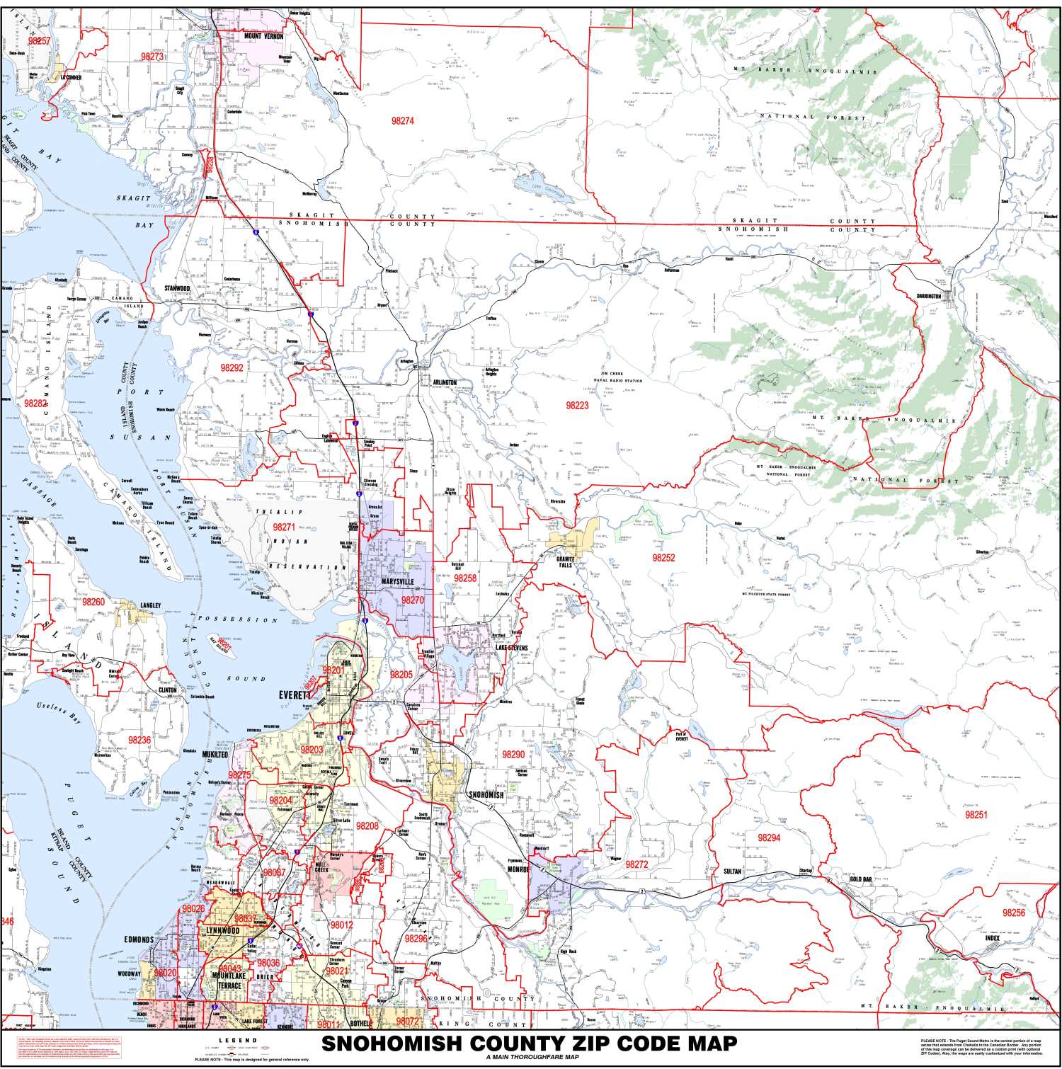 These arterial maps provide a detailed overview of the main thoroughfares, cities, highways, interstates, unincorporated place names, parks, golf courses, and much more. Careful text placement and an attractive color scheme only enhance the accuracy of these maps from local publisher, Kroll Map Company. This 36" x 36" map covers most of populated Snohomish County